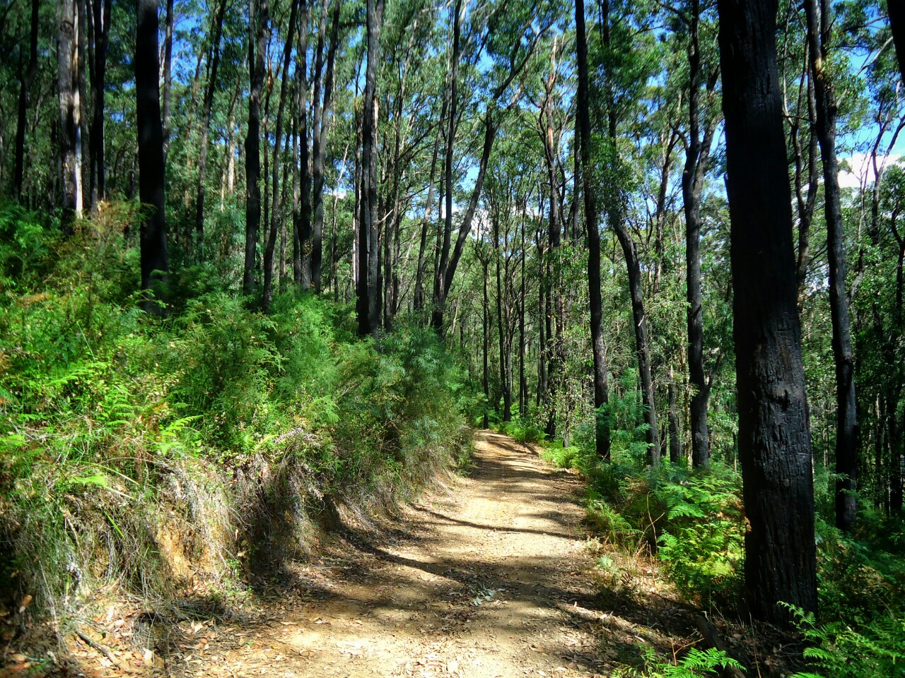 The house is located in the middle of Eucaliptus forrest, not far from Healesville (photo below left), one hour driving from Melbourne. The place is a paradise for all nature lovers, like us. Hills offer great hikking paths and two creeks provide idilic spots for finding peace. But the forrest holds other traps. Destructive bushfire broke out in this area, seven years ago. Traces are still visible (photo below right.) The building survived thanks to home made system of pipes and water sprinklers around the roof. I found it very clever and efficient solution.