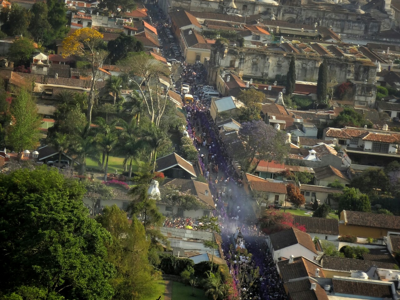 Antigua and Guatemala in general has many landmarks. First are volanoes. Antigua is surrounded by four. Two of them are still active! Photo below left shows the closest one - Volcán de Agua (spa. Volcano of Water.) It carries it's name by the earthquake, which caused a landslide of water and rocks from the volcano slopes. Landslide devastated a town nearby. The second is Volcán de Fuego (spa. Volcano of Fire.) It's erruptions are an amazing view from Antigua on a clear day. One of such on the photo below right.