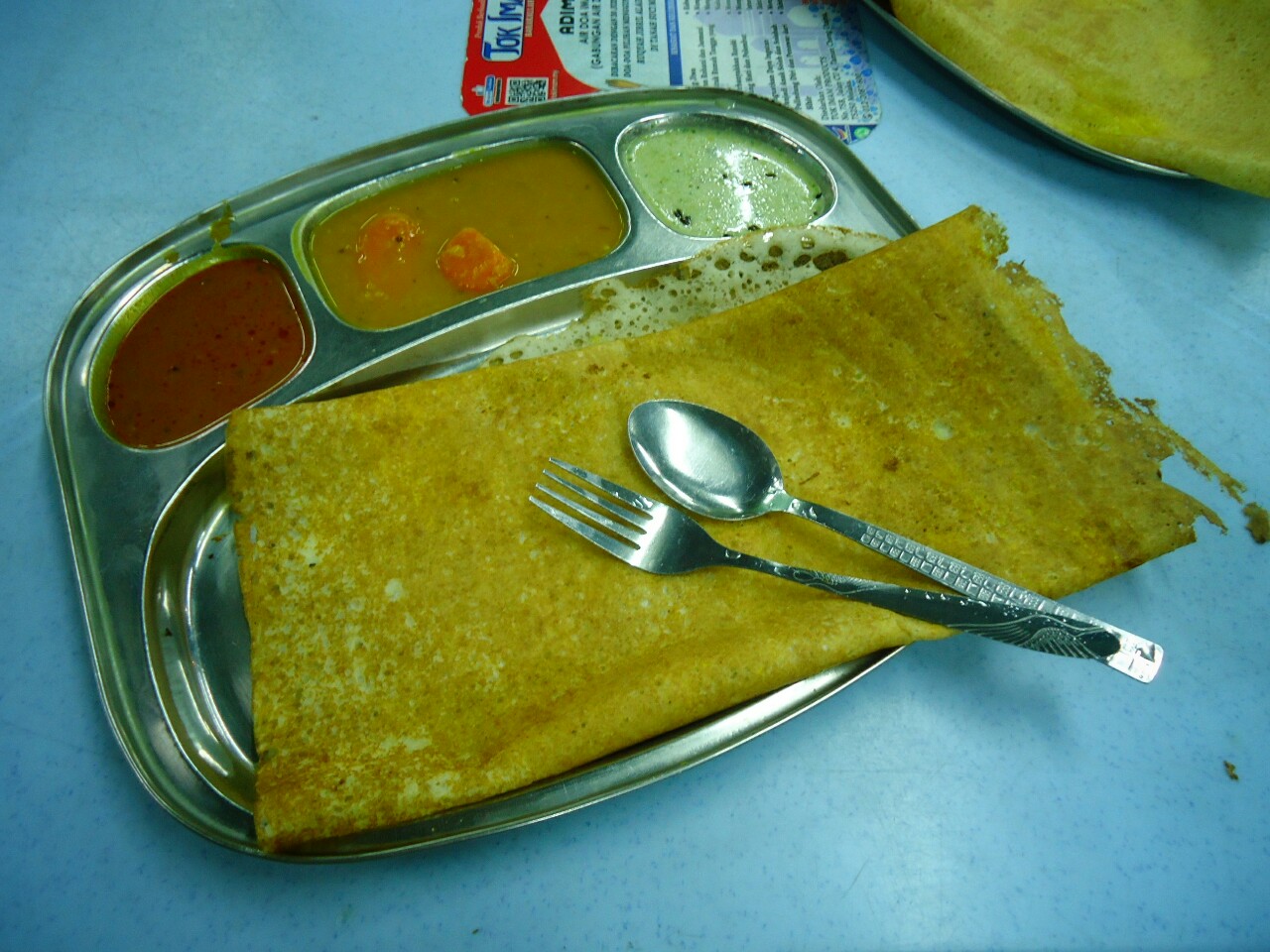 A consequence of british colonial history is that most of the people speak fluently english. This is good, because suddenly you can tell anything you have on your mind, and you are beeing understand. On the other hand it's bad because you don't learn local language. With chinese and indian languages we didn't hassle, but we put some minimal effort in malay. The most interesting (read: funny) are signs. Especially the words which are somehow imported from english. That way, taxi become "teksi", ticket counter is "kaunter tiket" etc.