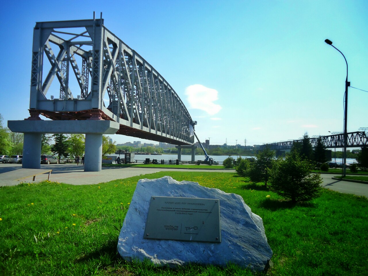And third city "center" is Ob river embankment. There used to be the first railway bridge. When it worn out, they built a new one (on photo below in background on right side). But they kept a part of old one as a memorial.