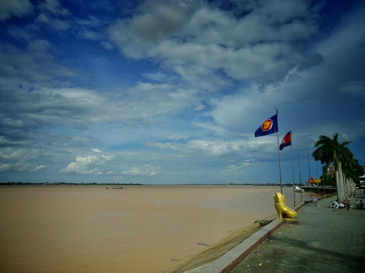 Phnom Penh is the capital of Cambodia. It's located in the very hearth of the country and it's sort of a crossroads of the ways to all parts of Cambodia. It was impossible to avoid visiting it. The river flowing through is Mekong which forms a massive delta in Vietnam. The river is huge, but the colour is not inviting for swimming.