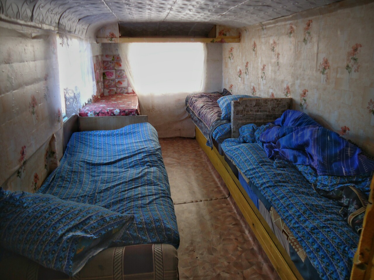 But much cheaper option is to find something when you're already there. Just by walking around the town you'll see a lot of houses with large letters "КОМНАТЫ" written somewhere. It means rooms. The expected price per night is around 400 RUB for two or three bed room. Don't expect commodity, but it can do for a night or two if you want to save some money.