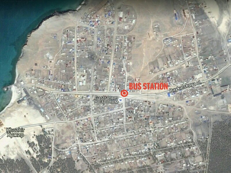 When you arrive to Khuzhir, bus drops passangers off at the bus station. The only thing is that not even with a great imagination I couldn't guess it's a bus station :) It's just a spot on some street besides a general store where busses stop.
