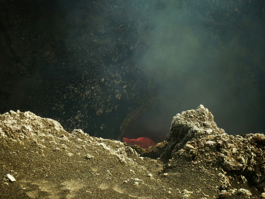 Pogled v krater je zastrašujoč. Nič čudnega, da so ga španski osvajalci poimenovali: "usta pekla." Vrh je zavit v dim, smrdi po žveplu, na dnu pa je možno videti mehurčkajočo se lavo.