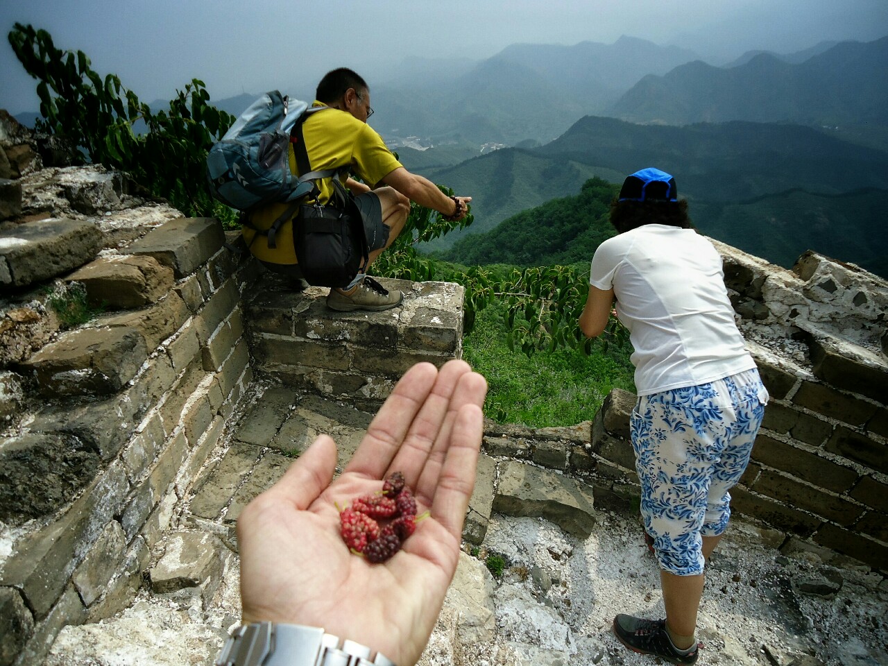 Manj kot 100 kilometrov severno od Pekinga se nahaja ena pomembnejših svetovnih dediščin - kitajski zid. Zgrajen za obrambo dežele pred vpadi mongolov, danes pa glavna kitajska turistična atrakcija. Posledično lahko na njem pričakujemo veliko turistov. Moja prva misel: "Oh, pa ne že spet. Če je tako kot v prepovedanem mestu, mene ni zraven." Na srečo je zid precej dolg. Po nekaj guglanja zasledim odsek Jinshanling, ki bi naj bil zaradi odročnosti manj obiskan. To je pomenilo spet nekaj dodatnih kolobocij s prevozom. Odpravil sem ze zgodaj zjutraj in ob sedmih na lokalnem avtobusu že zapustil Peking. Vožnja je nato trajala skoraj dve uri. Jinshanling ima dva vhoda - vzhodnega in zahodnega. Do zahodnega vozi brezplačen avtobus, na vrh hriba (do zid)u se je moč povzpeti z gondolo. Spet se sliši preveč turistično. Do vzhodnega, pa se je treba podati kakšna 2 kilometra peš, tudi za vzpon je potrebno zagrizti v kolena. To bo moja izbira. In tako zgodnje vstajanje, kot pešačenje se je izplačalo. Ko sem stopil na zid, sem bil tam sam. Podal sem se v smeri proti zahodu in šele po kakšnih dveh urah spokojnosti začel srečevati prve zasopihane obraze, ki so mi prihajali naproti iz drugega vhoda :)
