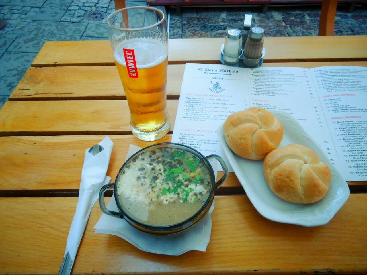 Druga stvar je pivo Żiwiec in Żurek z białą kiełbasą.